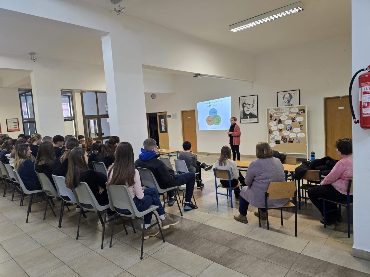 U svrhu informiranja i savjetovanja o upisu u srednju školu, u holu naše škole održano je informativno predavanje za učenike osmih razreda. Predavanje je održala predstavnica Centra za informiranje i savjetovanje o karijeri (CISOK), koja je učenike upoznala s različitim mogućnostima upisa u srednje škole te ih informirala o aktualnim trendovima i potrebama na tržištu rada.